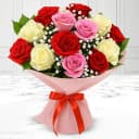 This bouquet is made of: - 12 Mixed Roses Bouquet Buy this gift of 12 Mixed Roses Bouquet wrapped in a beautiful net for those who mean the world to you and convey to them that you care.