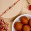 This is a gift of: - An AD Rakhi by Rakhi Sutra (DFRK1043A) - Gulab Jamun (500g) - Complimentary Roli Tika N Chawal - Complimentary Message Card with Free Rakhi Celebrate the bond of love and togetherness this Raksha Bandhan with our Fantastic AD Rakhi N Gulab Jamun Combo. Included in this thoughtfully curated set, you will find a beautifully designed AD Rakhi by Rakhi Sutra, guaranteed to adorn your siblings wrist with elegance and charm. Accompanying the Rakhi is a mouth-watering 500g pack of Gulab Jamun, the perfect traditional treat to indulge in together and create cherished memories. To complete the festive vibes, we include complimentary Roli, Tilak, and Chawal for the holy rituals. The set also comes with a heartfelt message card to express your love and warm wishes. Celebrate the essence of this beautiful festival with a blend of traditions and delectable sweetness, delivered with the utmost care right to your doorstep.
