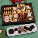 It Includes: - 4 Granola Chocolate Logs, - 2 Almond Chocolate Florentines, - 3 Almond Chocolate Rocks, - 8 Assorted Chocolates (Oreo, Butterscotch, Orange Crisp, Roasted Almond, Cranberry, Fruit and Nut), - 2 Almond Fingers, Sweets and Spicy Trail Mix (50 Gms). Experience the true essence of Diwali with our Flavors To Savor N Share. This specially curated box is a symbol of the treasures that come with the festivals spirit of abundance. Filled with an irresistible assortment of indulgent treats, it is sure to add a touch of sweetness to your celebrations. As you open the box, you are greeted with a sensory delight. The rich aroma of chocolate and almonds wafts through the air, instantly enticing your taste buds. The 4 granola chocolate logs are a perfect combination of crunchy granola and smooth chocolate, creating a heavenly texture that will have you craving for more. Indulge in the almond chocolate florentines, where the delicate flavors of almond and chocolate come together in a harmonious blend. The crunchy texture adds an extra layer of excitement to every bite. The almond chocolate rocks provide an explosion of flavors, combining the nutty goodness of almonds with the lusciousness of chocolate. Discover a world of delightful surprises with the assortment of 8 chocolates in different flavors. From the classic favorites like oreo and butterscotch to the tantalizing combinations of orange crisp, roasted almond, cranberry, and fruit and nut, each bite is an adventure in itself. The box also includes 2 almond fingers, which are irresistibly smooth and nutty, and a pack of sweets and spicy trail mix to add some spice to your festivities. Whether you are treating yourself or surprising loved ones, our Flavors To Savor N Share is the perfect gift for Diwali. So, embrace the spirit of abundance and indulge in the decadent delights that this box has to offer. Let the sweetness of Diwali fill your hearts and homes with joy.