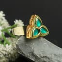 This is a gift of: - A Kundan Ring (Green) Add a touch of timeless elegance to your style with this Green Kundan Ring. The vibrant green Kundan stone is beautifully set within an intricately designed band, radiating a captivating sparkle that enhances any look. Perfect for special occasions or everyday wear, this ring highlights the exquisite craftsmanship of Kundan jewelry. The unique green hue and detailed design ensure it stands out in any jewelry collection. To preserve its allure, store the ring separately and avoid exposure to water and fragrances. Regular spot-cleaning will maintain its shine and intricate details. This Green Kundan ring is more than just a piece of jewelry; it embodies refined style and enduring beauty, making it a cherished gift or personal treasure.