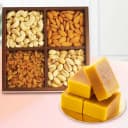 Delight in the rich flavors of Sangam Sweets' Mysore Pak, paired with a charming assortment of mixed dry fruits. This luxurious gift transcends ordinary sweets, conveying a warm message of love and appreciation. Each bite of the silky Mysore Pak offers a taste of Bangalore, while the crunchy dry fruits provide a healthy yet indulgent experience. Perfect for celebrations or a sweet surprise just because, this gift box is designed to make every occasion memorable. Share the joy with those you cherish! (Only Available at Bangalore)