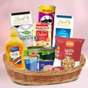 Elevate your gifting game with the Gourmet Sea Delights Gift Hamper, an exquisite selection that promises to tantalize the taste buds. This hamper features premium imported seafood including Sardine Fish in Brine, Tuna Fish in Brine, and Mackerel Fish in Brine, perfect for seafood lovers. Complementing these delights are gourmet condiments like Wingreens Farms Premium Veg Mayo and American Garden Mustard to enhance every dish. Satisfy the sweet tooth with decadent Lindt Dark and Milk Chocolate Bars, alongside a crunchy Mixed Nuts Pack and Imported Pringle Chips for added variety. All beautifully presented in a stylish, reusable basket, this hamper is ideal for impressing friends and family.