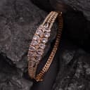 This graceful bracelet showcases radiant pear drop cubic zirconia stones elegantly mounted on a refined rose gold plated setting. The lightweight construction and intricate detailing make it an ideal accessory for both formal and casual occasions. With its stunning design, this bracelet guarantees you’ll shine on every outing, blending comfort with sophistication seamlessly.