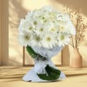 This bouquet is made of: - 15 White Gerberas Buy this graceful selection of 15 White Gerberas Bunch with Fillers that will sweep the heart of the person who receives it.