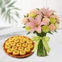 Deliver 12pc Immunity Sandesh from Balaram Mullick with a 8 Flowers Bouquet (Pink Lily, White Carnations N Pink Roses) to wish your loved ones on their special days. (Only Available at Kolkata)