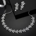 This gift box contains: - Silver Toned White American Diamond Studded Flower Shaped Necklace - A Pair of Matching Earrings Introducing our Impressive AD Necklace N Earrings Set featuring a Silver Toned White American Diamond Studded Flower Shaped Necklace accompanied by a perfectly paired set of earrings. Embrace sophistication as the radiant necklace delicately adorns your neckline, each American diamond shimmering with timeless allure against the silver-toned setting. Elevate your ensemble effortlessly with the matching earrings, designed to mirror the necklaces charm and add a touch of glamour to any look. Whether for a special occasion or to elevate your everyday style, this meticulously crafted set exudes refined beauty and is sure to leave a lasting impression with its timeless elegance.