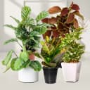Want to add a sparkle to someone's home? This vibrant collection of five indoor plants is the ideal way to infuse a breath of nature and joy into their space. Featuring stunning varieties like the elegant Maranta and the colorful Crotons, this collection offers beauty while enhancing air quality. These charming plants, ideal for any nook, deliver a sense of calm amidst busy lives. Each plant grows between 3 to 5 inches and comes in trendy plastic pots, perfect for decoration on desks or windows. Gift this botanical delight to a friend and watch their mood uplift with every glance at these greens!