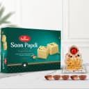 Moments turned out to be very special by ordering this Joyful Diwali Gift of Laxmi Ganesh Mandap with Haldiram Soanpapdi (200g) and make others feel happy. This Deepavali gift contains 5 Diyas.