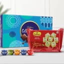 Send online to your favourite people this Joyful Diwali Sweet n Choco Combo with Matka Diya and make their day more bright and happy. This Deepavali gift contains Cadbury Celebration Chocolates (120g), Haldiram Soan Papdi (200g) n 5 Matka Diya.