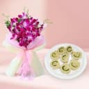 Kaju Cake from Mithas Delicious Sweets with Orchid Bouquet