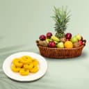 Buy Online to Send Kesar Peda (500 gm) from Dadus with 2kg Fresh Fruit Basket for your known N loved people. (Only Available at Hyderabad)