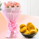 Kesar Peda from Sri Krishna Sweets with Pink Rose Bouquet