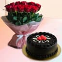 Send online this Lovely Bunch of 12 Roses with Chocolate Cake n Message Card to your special one and express your love. This flowers n cake gift combo include: Details:</br) No. of Flowers: 12 Type of Flowers: Roses Flower Color: Red Type of Arrangement: Bunch Type of Cake: Chocolate Cake Shape of Cake: Round Weight: ½ kg Best Suited For: Anniversary, Valentines Day, Birthday, Boyfriend N others.