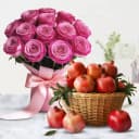 Deliver your message of love to your loved ones with this gift of Aromatic 12 Pink Roses Bouquet with 3 kg Juicy Pomegranate Basket and make them feel special.