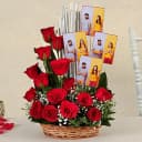 Gift to your beloved or your spouse, this Lovers Delight Basket Arrangement of 15 Red Roses and 4 Personalized Photos and show your true feelings on Valentines Day. Details needed: Send digital photos with your Alpha-numeric order id at: designphotocake@gmail.com or Whatsapp at +91 9230721098.