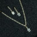 This stunning jewelry ensemble features glossy white oval stones, beautifully accented by sparkling floral embellishments. The unique V-shaped design is highlighted by an exquisite emerald cut centerpiece, exuding elegance. Paired with coordinating earrings, it’s the perfect choice for weddings and sophisticated gatherings.