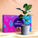 Experience the harmony of nature and sweetness with this delightful duo. The Rubber Plant, celebrated for its air-purifying properties, stands proud in a stylish plastic pot, measuring between 3 to 7 inches in height. Perfect for brightening up any indoor space! Paired with a 126-gram assorted Cadbury Celebration Pack, this gift provides a delicious selection for chocolate aficionados. It's more than just a gift; it's an enchanting combination of greenery and indulgence, ideal for birthdays, anniversaries, or simply to spread joy!