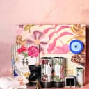 This gift box contains: - An Evil Eye Rakhi with Adjustable Chain for Brother - Turkish Hamsa Hand Charm for Bhabhi in a Gift Box - A Personalised Card including a Hand Written Message - Loyka’s Original Almond Brittle Chocolates (Pack of 15 pcs) - Turkish Rose, Almond, Saffron N Goat Milk Lotion (50ml) - Madagascar Coconut Milk N Mandarin Nectarizing Body Wash (50ml) - Myra Veda inscribed Trident Turkish Face Towel - An Evil Eye Handmade Candle - A Brass Candle Snuffer - Marble Diffuser with Tea Light Candle N Bergamot Essential Oil Delight your Bhai N Bhabhi with our Luxurious Festive Gift Box for Raksha Bandhan that offers an elevated festive experience. This premium gift set includes an Evil Eye Rakhi with an adjustable chain for your brother and a Turkish Hamsa Hand Charm for your sister-in-law, all elegantly packaged in a chic gift box, together with a personalized card and handwritten note. Indulge in the luscious flavors of Loyka’s Original Almond Brittle Chocolates, combining roasted almonds, salty caramel, and dark chocolate in 15 delightful pieces. Pamper your skin with the Turkish Rose, Almond, Saffron N Goat Milk Lotion, offering long-lasting hydration and smoothness. Experience a refreshing cleanse with the Madagascar Coconut Milk N Mandarin Nectarizing Body Wash. Refresh your skin using the Myra Veda inscribed Trident Turkish Face Towel. Set a calming ambiance with an Evil Eye Handmade Candle and elegantly extinguish it with a Brass Candle Snuffer. Complement the experience with a Marble Diffuser, including a Tea Light Candle and Bergamot Essential Oil for a delightful aromatic setting.