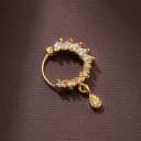 Experience the perfect blend of tradition and modern elegance with our Luxurious Gold Marquise Teardrop Nose Jewelry. Crafted to accentuate the beauty of the contemporary woman, it features stunning marquise-cut CZ stones and intricate micro CZ crystals that catch the light beautifully. The exquisite teardrop charm adds to its charm, making it a statement piece for all your festive occasions. Designed with a secure wire for comfort, it complements sarees, lehengas, and more, making it an essential accessory for weddings and festivals.
