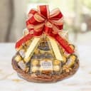 This Ferrero Rocher Gift Hamper consists of: - 24pc Ferrero Rocher Chocolate Box - 16pc Ferrero Rocher Chocolate Box - 2x4pc Ferrero Rocher Chocolate Box - 2x3pc Ferrero Rocher Chocolate Box - 16pcs Ferrero Rocher Moments Chocolate Box - A Reusable Gift Basket This indulgent hamper brings together a rich assortment of Ferrero Rocher delights, featuring a 24-piece chocolate box, a 16-piece box, two 4-piece boxes, and two compact 3-piece boxes—perfect for sharing or savoring across moments. To top it off, it includes a 16-piece Ferrero Rocher Moments box that offers a smooth, creamy variation of the classic. Nestled in a reusable gift basket, this collection is ideal for those who appreciate the unmistakable taste of hazelnut chocolate in every form and size