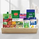 Deck the lives of the people closest to your heart with love by sending this Magnificent Holiday Treat Breakfast Hamper for Xmas that beautifully conveys the message of your heart to them. This Xmas Hamper contains: 1. Top Ramen Curry Veg Noodles (280g) 2. Kissan Schezwan Sauce (200g) 3. Del Monte Food Craft Penne Pasta (1kg) 4. Keya Italian Pizza Oregano (80g) 5. Veeba White Pasta Dressing (285g) 6. Veeba Eggless Mayonnaise (250g) 7. Knorr Classic Sweet Corn Veg Soup (2 * 44g) 8. Haribo Chamallows Pink N White Share Size (140g) 9. A Wooden Tray.