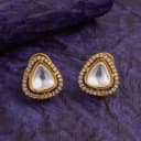 Discover the perfect blend of tradition and modern elegance with these majestic triangle-shaped kundan studs. Each earring features a captivating uncut kundan stone that is beautifully framed by a delicate CZ stone halo, creating a breathtaking appearance. With their lustrous gold-plated finish, these earrings are perfect for both special occasions and everyday wear, adding a royal touch to any outfit.