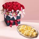 Malai Barfi from Karachi Sweet Mart with a Designer Flower Arrangement
