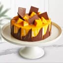 Splash liveliness into the lives of the people you care about by gifting this Marvelous Eggless Mango Cake topped with Chocolate Thins that help instantly rejuvenate the mood. Product Details: - Cake Type: Eggless Mango Cake - Variant: Eggless - Flavor: Mango - Shape: Round - Base: Chocolate Sponge Base - Garnishing: Mango Syrup and Chocolate designs on the body - Topping: Chocolate thins and Mango Chunks - Weight: 1 Kg
