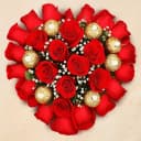 This heart shaped arrangement is made of: - 24 Red Roses - 16 pc Ferrero Rocher Chocolate Deliver your message to your loved ones with this gift of Marvelous Heart Shaped Arrangement of 24 Red Roses N 16 pc Ferrero Rocher Chocolate and make them feel special.