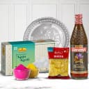 Deliver happiness online by sending this Holi special gift of Marvelous Silver Plated Thali with Holi Gifts Assortments and spreading the colours of love. This holi combo comprises of: 1. Silver Plated Thali (size: 5-6 inch, weight:0.98gm approx) 2. Haldirams Kaju Katli (1/2 kg: Gross Weight) 3. Haldirams Bhujia (200 gm) 4. Thandai Bottle from Ganesh (750 ml) 5. 2 pkts Herbal Gulal Free.