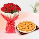 Shop Online for Mathura Peda (500 Gms) with 12pcs Red Carnation Tissue Wrapped Bouquet N send it to your family N friends. (Only Available at Delhi)