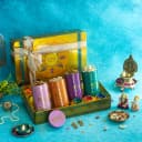 The Gift Includes: - Cashew 150 gm Packed In Tin Can - Almond 150 gm Packed In Tin Can - Pistachio 150 gm Packed In Tin Can - Raisin 150 gm Packed In Tin Can - 6 Colourful Diya Set - Packed In Kesar Yellow Diwali Special Tin Box Celebrate the festival of lights in style with our Mega Nuts Box And Diya Set. This luxurious set is all you need to add a touch of elegance to your Diwali celebrations. Each box is filled with an assortment of delicious dry fruits, including cashews, almonds, pistachios, and raisins, each weighing 150 grams. The tin cans ensure the freshness of the dry fruits, making them the perfect treat to indulge in during the festive season. But thats not all – this Mega Nuts Box And Diya Set also includes a set of six colorful diyas. These beautifully crafted diyas will illuminate your home and create a warm, inviting ambience. The diya set comes packaged in a stunning Kesar Yellow Diwali Special Tin Box, adding a touch of opulence to your festive decor. Whether youre looking for a thoughtful gift for your loved ones or want to treat yourself to a special Diwali surprise, our Mega Nuts Box And Diya Set is the perfect choice. It encompasses the essence of the festival – the joy of indulging in delicious treats and the spirit of spreading light and happiness.
