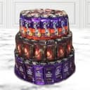 This 3 Layer Arrangement comes with: - 24 pcs Cadbury Dairy Milk Chocolates (13g each) - 20 pcs ITC Dark Fantasy Chocolate Filled Cookies - 15 pcs Cadbury Crispello Wafer Crisp Chocolates (10g each) Order online this gift of Mesmerizing 3 Layer Arrangement of Mixed Chocolate n Cookies for your special one and show your love and affection. This beautiful 3 Tier Arrangement comes presented with 24 pcs Cadbury Dairy Milk Chocolates (13g each), 20 pcs ITC Dark Fantasy Chocolate Filled Cookies and 15 pcs Cadbury Crispello Wafer Crisp Chocolates (10g each).