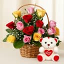 This arrangement is made of: - 15 Mixed Roses - Teddy Bear (6 inch) Buy this combo of 15 gorgeous Mixed Roses Arrangement with Teddy Bear (6 inch) that you can gift to your near and dear ones and make them very happy.