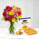 Mysurpa from Sri Krishna Sweets with a Mixed Flower Arrangement
