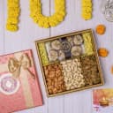 This gift hamper contains: - Premium Cashews (150gm) - Premium Almonds (150gm) - Premium Raisins (150gm) - Dunkel Braun Tart Baklava (90gm) - Reusable Gift Box This luxurious gift hamper is designed for those who enjoy fine gourmet treats. It features an assortment of Premium Cashews, Almonds, and Raisins (150g each), offering a healthy yet indulgent snacking experience. The Dunkel Braun Tart Baklava (90g) brings an exotic sweetness, making it a perfect complement to the crunchy nuts. Each item is carefully arranged in a reusable gift box, adding an eco-friendly touch to this lavish present. Whether for a special celebration or a thoughtful gesture, this hamper is sure to impress and delight.