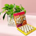 Experience the perfect blend of sweetness and greenery with our Nutty Indulgence gift set. Featuring 500 grams of delectable Badam Katli from Blissful Bikanervalas, this gift is beautifully complemented by a lush Money Plant in a stylish glass pot. Delight your loved ones with this thoughtful surprise that not only satisfies their sweet tooth but also enhances their home décor with the presence of vibrant greenery. Perfect for celebrations or simply to show you care, this gift encapsulates both flavor and tranquility. Note - Only Available at Ahmedabad