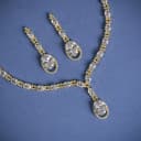 Discover the essence of refinement with this opulent necklace featuring a stunning oval pendant, gracefully encircled by a cascade of sparkling small round Cubic Zirconia stones. An ideal accessory for celebrations, romantic occasions, or to beautifully complement your traditional attire.