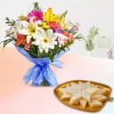 Palmsugar Kaju Kathily from Adyar Ananda Bhawan with Seasonal Flower Bouquet