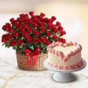 Ignite the essence of love with our stunning assembly of fifty dazzling red roses paired with a scrumptious 2-pound Heart Cake. This elegant gift captures the spirit of joy and celebration, making it perfect for any occasion. Let your loved one indulge in both the beauty of fresh roses and the delightful taste of a homemade cake, leaving them with lasting memories and smiles.