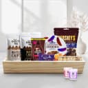 Paint a smile on the faces of the closest people in your life by sending this Perfect Holiday Treat Snacks Hamper for Xmas that carries the essence of the feelings for them straight from your heart. This X-mas Hamper includes: 1. Waffle Mill - Waffle Chips - Milk Choco Drizzle 85g 2. Waffle Mill - Waffle Chips - Dark Choco Drizzle and Sea Salt 85g 3. Sapphire Chocochip Cookies 150g 4. Hersheys Chocolate Syrup 32g 5. Ferrero Rocher T4 50g 6. Hersheys Exotic Dark Blueberry N Akai 100g 7. 2pc Cadbury Dairy Milk Chilli Orange 36g 8. 2pc Aroma Shots Candles 9. Wooden Tray.