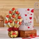 This valentine gift combo contains: - 10 Pcs Homemade Chocolates - Metal T Light Holder - A Valentines Day Card Discover the perfect pairing with our Perfect Pairing: Handmade Chocolates N T Light Holder Combo, The Perfect Pairing. Immerse yourself in a chocolaty delight with 10 exquisite homemade chocolates that will satisfy your sweet cravings. To elevate the experience, weve included a chic metal T Light Holder that will set the mood and add a touch of sophistication to any space. The valentines day card will add an extra elegance to this combo. Treat yourself or surprise someone special with this perfect combination of indulgence and style.