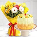 This gift combo has: - 12 Mixed Flowers Bouquet - Pineapple Cake (1Lb) Perfect for any celebration, this mouth-watering 1/2 kg Pineapple Cake with 12 Mixed Flowers Bouquet will fetch you appraisal.