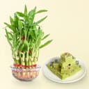 Buy Online to Send Pista Barfi (500 Gms) from Karachi Sweet Mart with 3 Tier Lucky Bamboo Plant for your known N loved people. (Only Available at Pune)