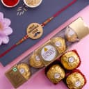 This is a gift of: - Best Brother Ever Rakhi by Rakhi Sutra (QURK048) - 4 Pc Ferrero Rocher Chocolates (50g) - Complimentary Roli Tika N Chawal - Complimentary Message Card with Free Rakhi Celebrate the special bond of siblinghood with this heartfelt Rakhi gift set that includes a stylish "Best Brother Ever" Rakhi by Rakhi Sutra (QURK048), designed to make your brother feel truly cherished. Accompanied by 4 pieces of luxurious Ferrero Rocher chocolates (50g), this gift offers a perfect blend of sentiment and sweetness. With complimentary Roli Tika N Chawal and a free message card included, it’s a complete festive package that adds warmth and love to your Raksha Bandhan celebration.