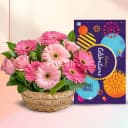 Illuminate your day with this delightful arrangement that embodies warmth and joy. Featuring stunning pink roses coupled with vibrant gerberas, each flower radiates life and beauty. Accompanying this floral ensemble is a scrumptious Cadbury Celebration Pack, filled with delightful chocolates that enhance the festive spirit. Ideal for any celebration or a simple gesture of love, this offering ensures to bring smiles and create unforgettable memories. Indulge yourself or surprise someone special with the perfect blend of nature's charm and sweet delights.