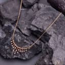 This stunning necklace features a luxurious rosegold plated finish that adds a touch of sophistication to any outfit. Its lightweight construction and sturdy design beautifully complement the dazzling pendant, making it perfect for stacking or as a standout accessory on its own. Whether dressing up for a special occasion or adding flair to your everyday style, the Radiant Cascade necklace is a stylish choice you won't regret.