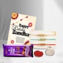 Celebrate the special bond with your brother through our Radiant Kundan Rakhi set! This stunning collection features three beautiful Rakhis, crafted with precision and adorned with vibrant Kundan stones. Your brother will feel cherished wearing these artistic symbols of your love on Raksha Bandhan. Complementing this heartfelt gift is a delightful 60g Cadbury Dairy Milk Silk chocolate bar, perfect for sharing sweet moments together. Don’t worry about the traditional rituals; we've included complimentary Roli Tika and Chawal! To add a personal touch, a free message card is provided for you to express your heartfelt sentiments. This Radiant Kundan Brother's Bond set is a perfect blend of tradition and artistry for a memorable celebration.
