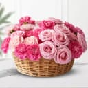 This splendid Pink Blossom Basket is a heartfelt way to express your feelings. Featuring 24 delicate pink carnations alongside lush pink roses, this arrangement is a true testament to beauty and grace. The charming round basket adds an elegant touch, making it suitable for any celebration. Be it a birthday, an anniversary, or a warm surprise, this extraordinary floral ensemble will undoubtedly uplift the spirits of your loved ones and convey your affection. Delight in seeing their joy as they receive this artfully crafted bouquet, designed to bring smiles.