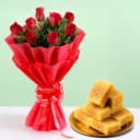 This gift combo includes: - 8 Red Roses Tissue Wrapped Bouquet - Mysore Pak (500 Gms) This delightful gift combo features an exquisite tissue-wrapped bouquet of 8 radiant red roses, symbolizing love and passion, paired perfectly with 500g of the traditional South Indian sweet, Mysore Pak. The bouquet brings a vibrant burst of color and elegance, making it ideal for expressing heartfelt sentiments on special occasions. Meanwhile, the Mysore Pak, renowned for its rich, buttery flavor and melt-in-your-mouth texture, adds a touch of indulgence to the celebration. This thoughtful combination is perfect for anniversaries, birthdays, or simply to show someone how much you care, blending the beauty of flowers with the sweetness of tradition.